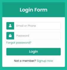 Login Form: Contains fields for the email/username and password, along with a login button.